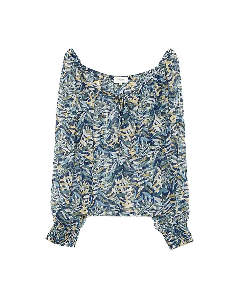 La silhouette : Cette jolie blouse vaporeuse est délicieuse sur la peau. Comme un coup de blush sur les pommettes, elle illumine le teint et met subtilement en valeur le décolleté. La fluidité des manches bouffantes insuffle à cette pièce un esprit léger et frivole qui incarne les beaux jours à venir. On aime les pétales de lurex et son motif exotique signé Grace & Mila pour une allure gracieuse et sensuelle.