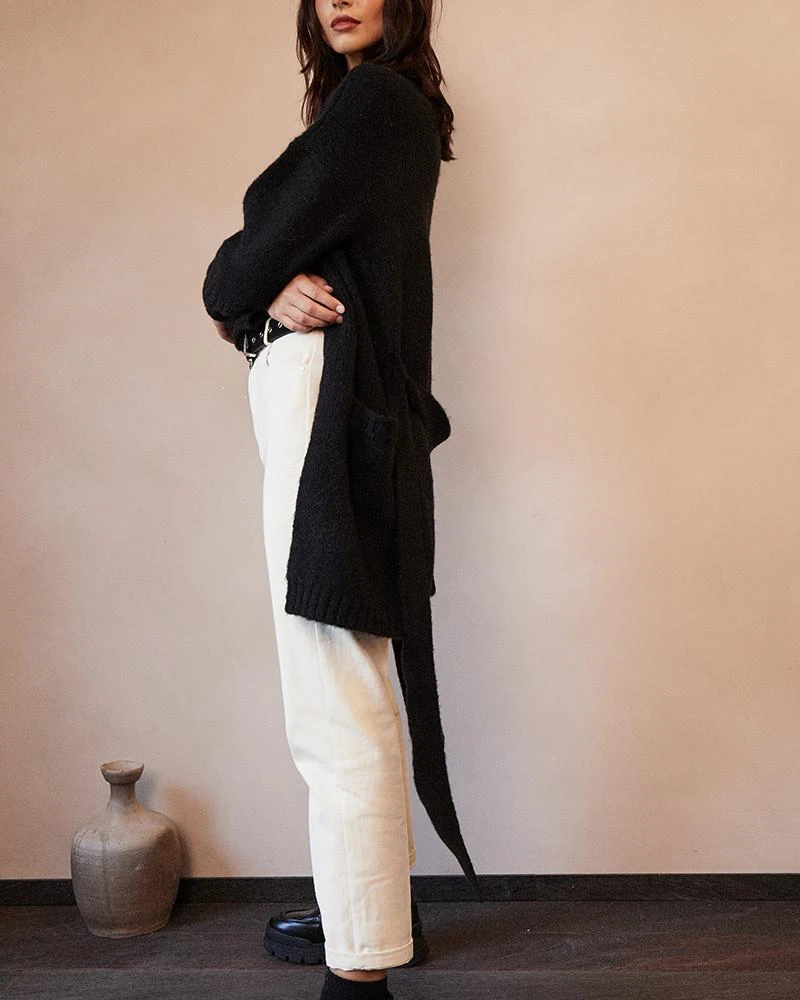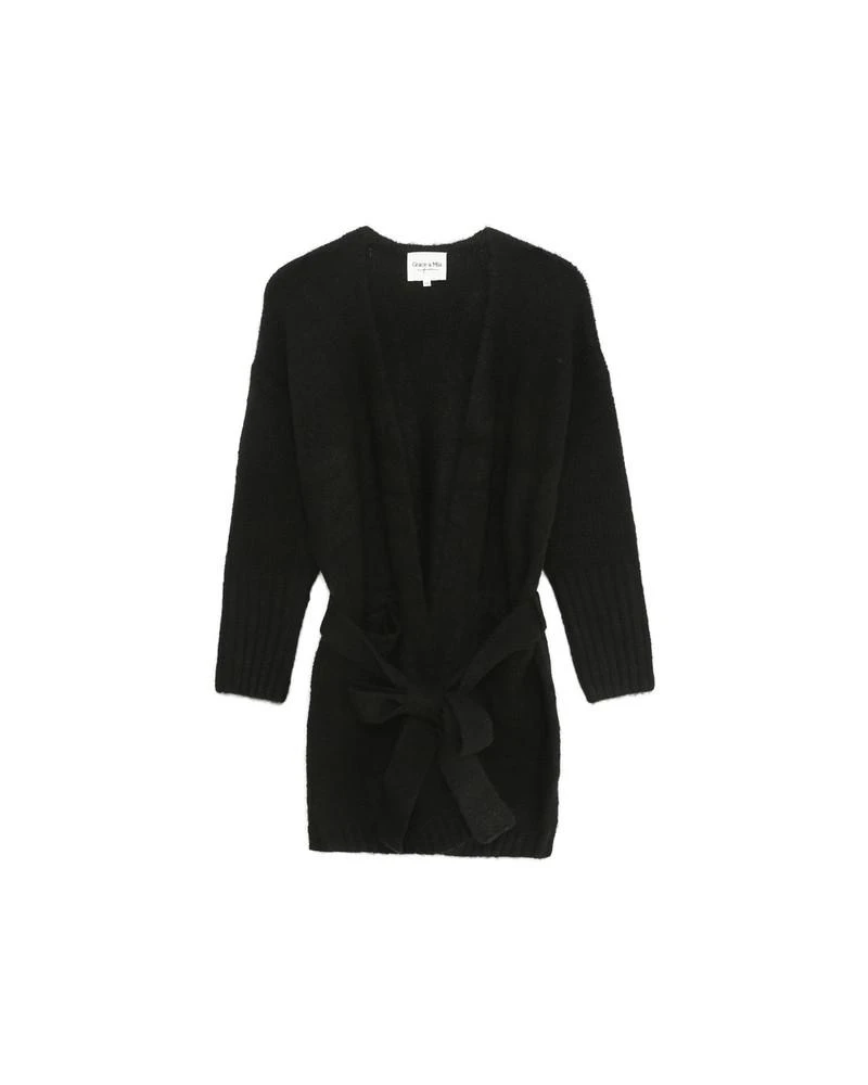 La coupe : DAKAR est un cardigan long à manches longues avec une ceinture à nouer et sur le devant.