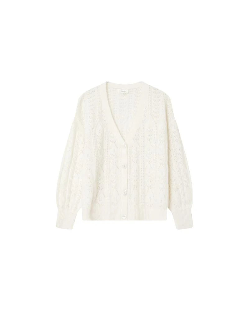 La coupe : DOUCE est un cardigan en tricot oversize avec une encolure en V. On adore ses manches longues bouffantes qui s’achèvent sur des finitions en poignets côtelés.