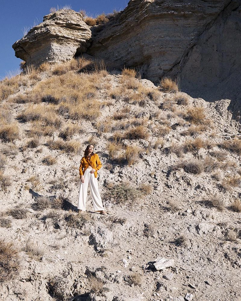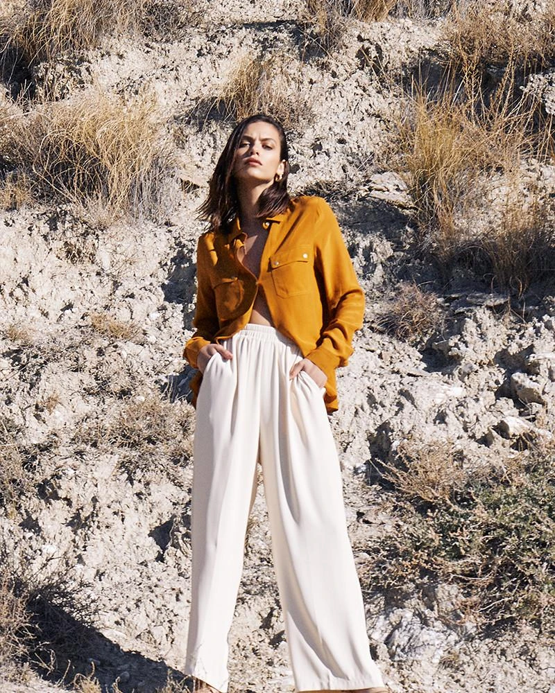 La silhouette : Cette chemise en viscose rayonne est un nouvel essentiel de la garde robe Grace & Mila. Son tissu fluide et soyeux est agréable sur la peau. On aime son côté subtilement boyish si l’on boutonne le col et son allure sensuelle si l’on ose détacher quelques boutons. Une pièce douce et délicate pour une allure casual chic.