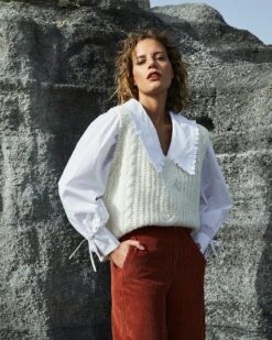 La silhouette : Cette chemise boyish inspiration vintage est un petit bijoux ! On aime ses jolis détails de bordure de volants sur le col Claudine et les liens délicats à nouer aux manches. Une pièce de caractère avec beaucoup de charme qui ne laissera personne indifférent. Osez DARLING !