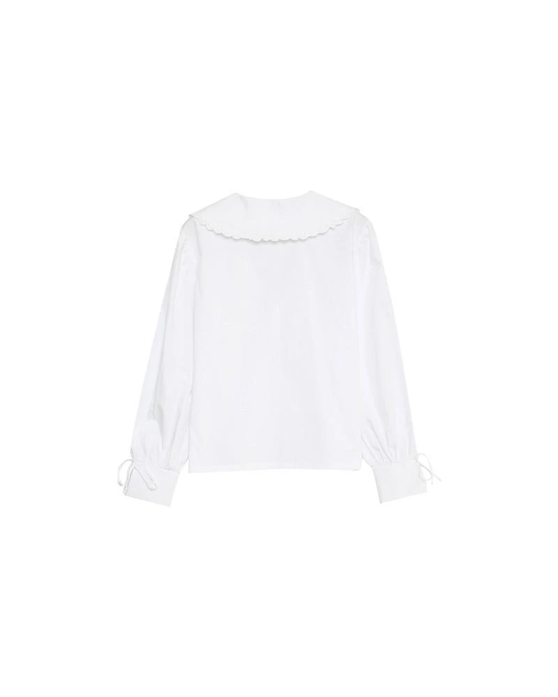 La coupe : DARLING est une chemise en popeline à manches longues avec un col Claudine oversize, une encolure en V, des bordées de liens en noeud aux poignets et une patte de boutonnage sur le devant.