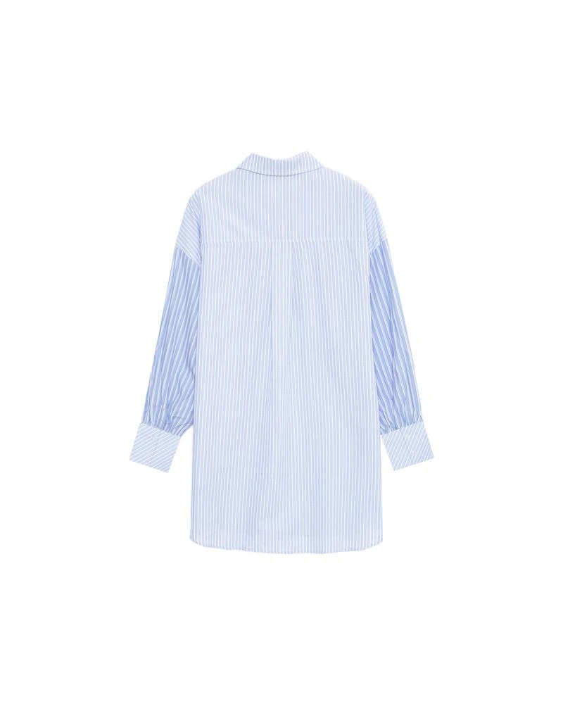 La coupe : DEMY est une chemise coupe oversize à manches longues avec des poignets boutonnés, un col classique et une patte de boutonnage sur le devant.