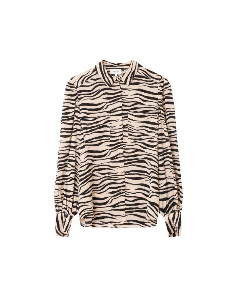 La coupe : DROLE est un chemisier imprimé avec deux poches plaquées sur la poitrine.