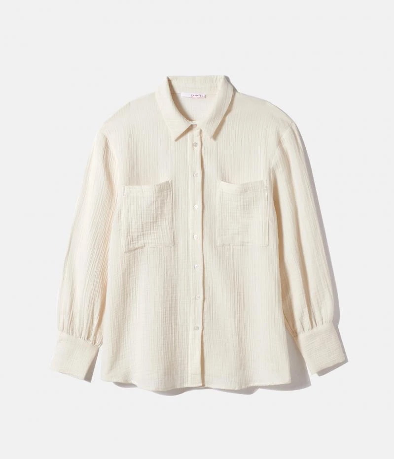 Vente Chemise femme en gaze de coton unie Camaieu – Une chemise femme confectionnée en gaze de coton unie. Coupe droite légèrement élargie esprit chemise d’homme, emmanchures descendues, manches longues resserrées aux poignets, col chemise, pattes boutonnée, poches oversize sur la poitrine. Le mannequin mesure 1.75M et porte une taille M.