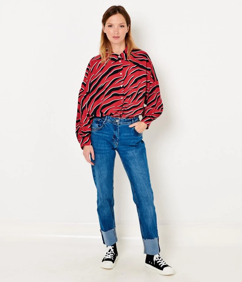 Vente Chemise oversize femme imprimée viscose responsable Camaieu – Une chemise femme confectionnée en viscose et lyocell. Coupe élargie pour un portée loose, emmanchures descendues, col chemise qui se prolonge sur une patte boutonnée, base arrondie et rallongée, manches 3/4 soulignées au bas par un jeu de fronces et resserrées aux poignets par un bouton, imprimé en all over. Le mannequin mesure 1.70M et porte une taille M. A porter en total look avec la chemise ref.537837. Ce produit a été fabriqué à partir de matière cellulosique issue de bois provenant de forêt éco-gérée et transformée grâce à un procédé réduisant la consommation d’eau.