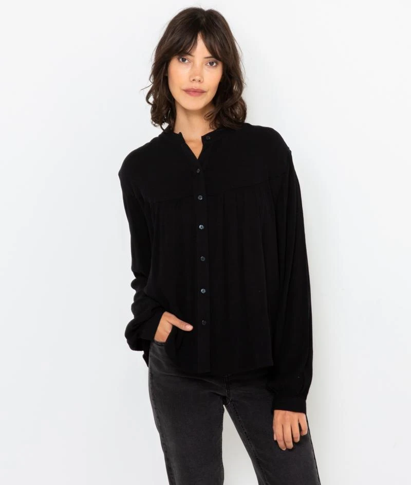 Vente Chemisier boutonné crépon femme Camaieu – Un chemisier femme confectionné en crêpe de viscose unie. Coupe droite, encolure ronde sans col, fermeture patte boutonnée, jeu de découpes poitrine. Le mannequin mesure 1M75 et porte une taille M.