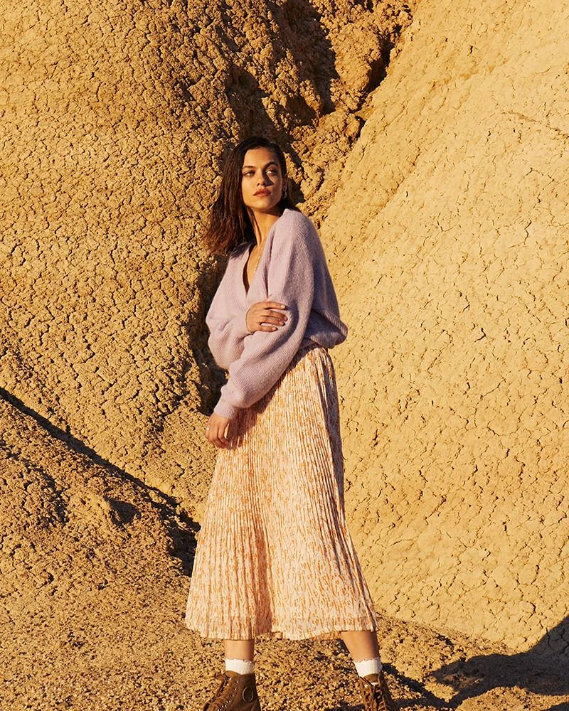 La coupe : CAMELIA est un cardigan court oversize avec des manches longues légèrement bouffantes.