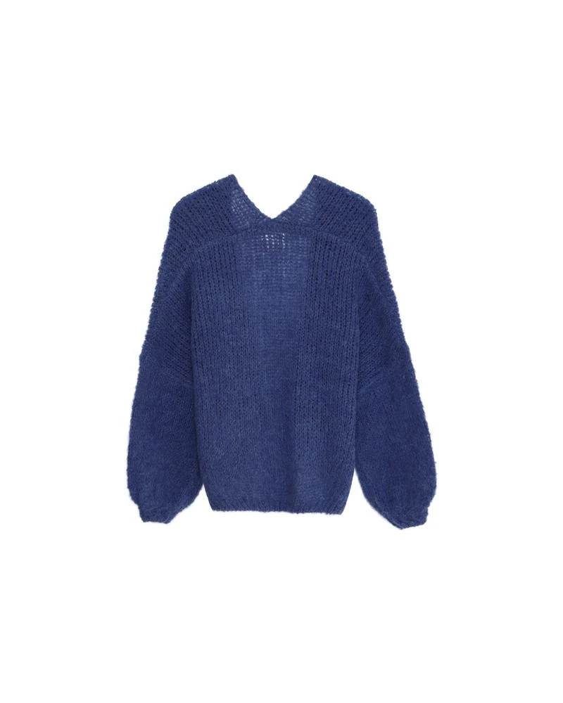 La coupe : DADDY est un cardigan oversize à manches longues bouffantes et des épaules tombantes avec un ourlet arqué.