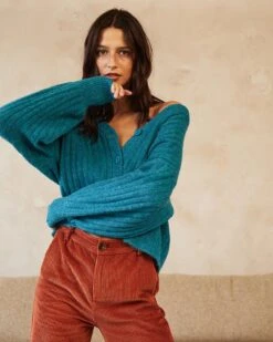 La silhouette : Vous l’aviez adoré la saison dernière, ce joli cardigan tout doux en maille côtelée est de retour dans de nouveaux coloris et avec un joli petit col en V ! Pour une journée cocooning à la maison ou une journée au bureau, DAGNY est un incontournable.