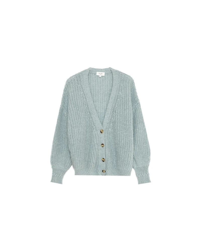 La coupe : DALIDA est un cardigan en tricot oversize à manches longues avec une encolure en V et une patte de boutonnage sur le devant.