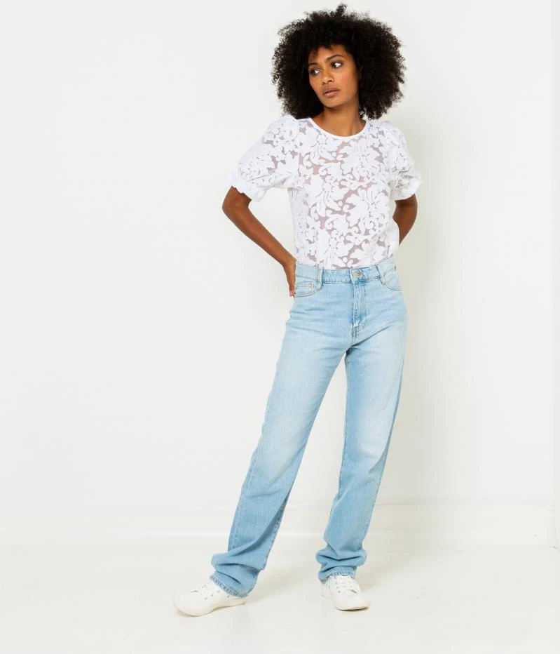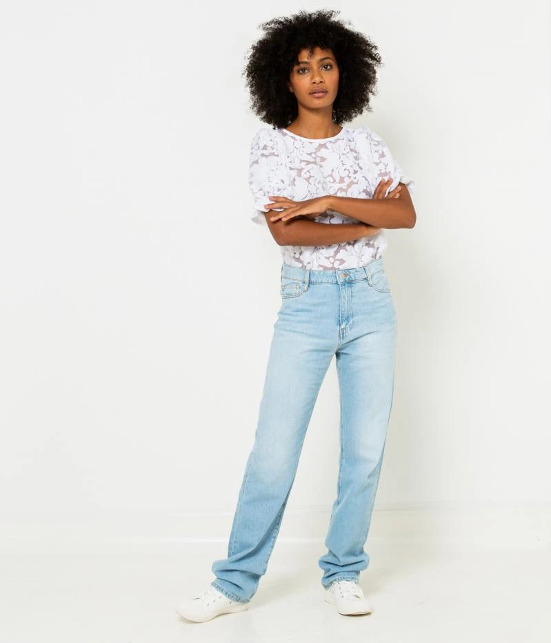 Vente Jean droit femme waterless process Camaieu – Un jean femme confectionné en coton-élasthanne pour plus de confort. Coupe droite, 5 poches, passants ceinture, bouton métal et zip sous patte. Pour le coloris vintage black, le mannequin mesure 1.75M et porte une taille 38. Ce produit a été fabriqué à partir d’un procédé de délavage réduisant la consommation d’eau.