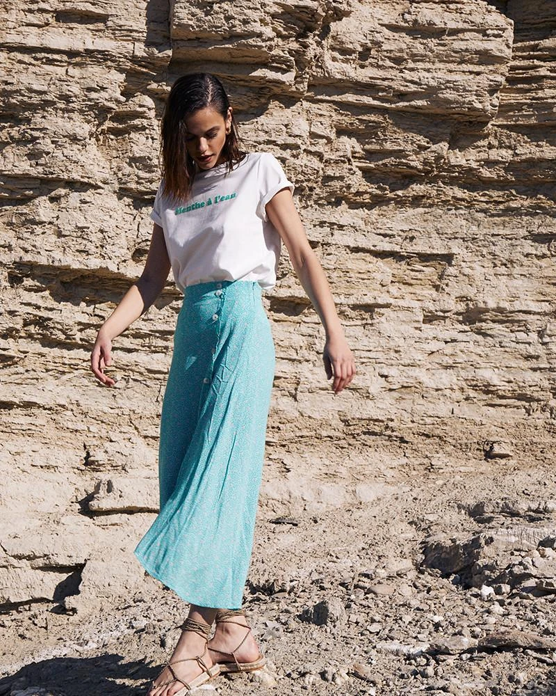 La silhouette : Cette jupe légère et fluide dévoile joliment vos gambettes pour un effet sensuel et délicat. Son imprimé exclusif apporte beaucoup de fraîcheur à cette nouvelle pièce iconique de la garde robe Grace & Mila. L’allure est confiante, charmante et confortable.