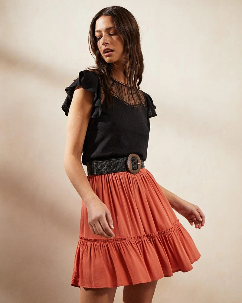 La silhouette : Cette jupe évasée en tissu viscose rayonne est certifiée ECOVERO et dessine joliment la taille pour mettre en valeur votre silhouette. Son tissu agréable sur la peau rend cette pièce ultra facile à porter et donne confiance en soi. On s’y sent tellement bien !