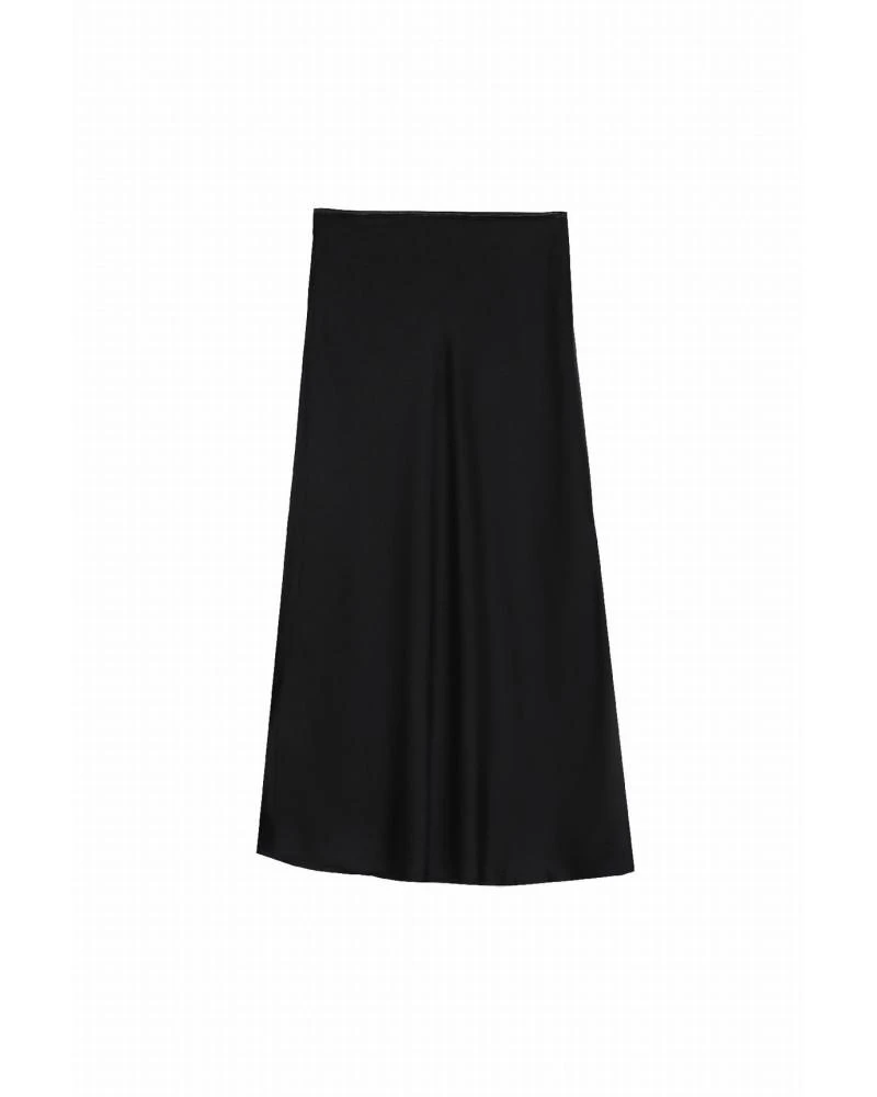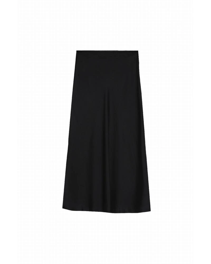 La coupe : CHERIE est une jupe midi en satin fluide effet tulipe, élastiquée à la taille.
