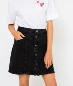 Vente Jupe denim waterless process Camaieu – Une jupe femme confectionnée en denim de coton. Coupe courte et trapèze, patte boutonnée devant, passants taille, jeu de découpes, poches plaquées. Le mannequin mesure 1.68M et porte une taille 38. Ce produit a été fabriqué à partir d’un procédé de délavage réduisant la consommation d’eau.