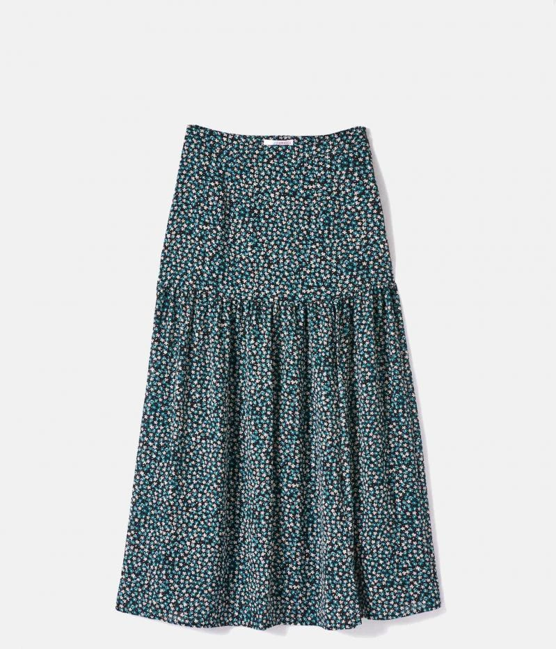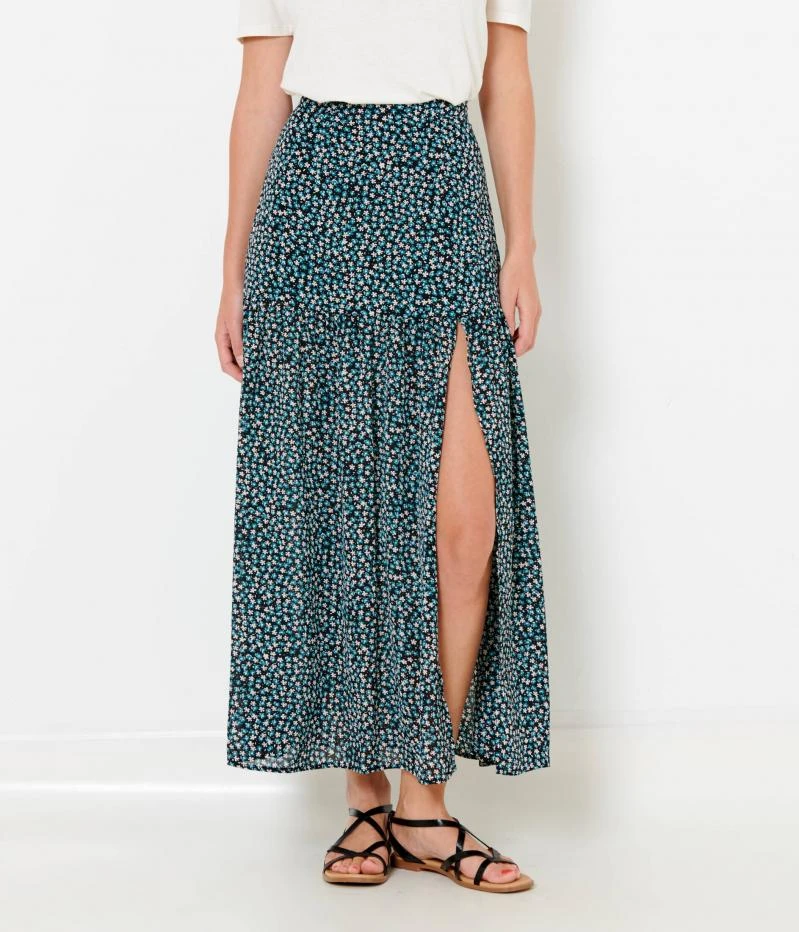 Vente Jupe longue fleurie fendue Camaieu – Une jupe longue femme confectionnée en voile de polyester. Coupe droite qui s’évase délicatement à la base, fermeture zip invisible sur le côté, fente d’aisance prononcée, doublure mi-cuisses, motif fleuri en all-over. Le mannequin mesure 1.75M et porte une taille 38.