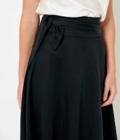 Vente Jupe noire fendue ceinturée Camaieu – Une jupe femme confectionnée en lin et tencell. Coupe droite qui s’évase délicatement à la base, fermeture zip latéral invisible, lien à nouer à la taille, fente d’aisance à l’avant, porté fluide. Le mannequin mesure 1.75M et porte une taille 38.