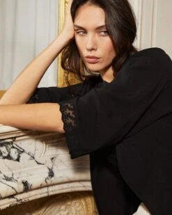 « La coupe : COMPLICE est un kimono manches 3/4 avec une bordure en dentelle en bordure de manches.