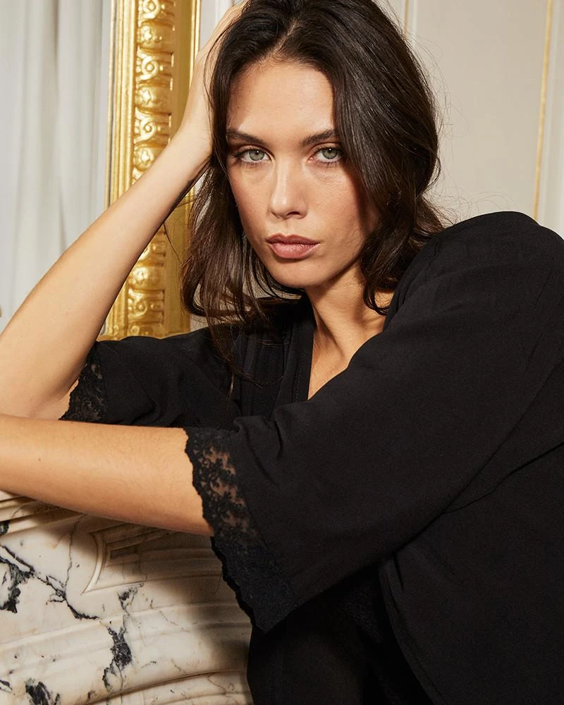 On aime le porter avec : Un pantalon fluide et un joli débardeur ou sur une petite robe effet nuisette en le portant comme une petite veste légère ; on aime aussi le porter sur le twinset short et débardeur de la ligne loungewear qu’il viendra sublimer raffinement. »
