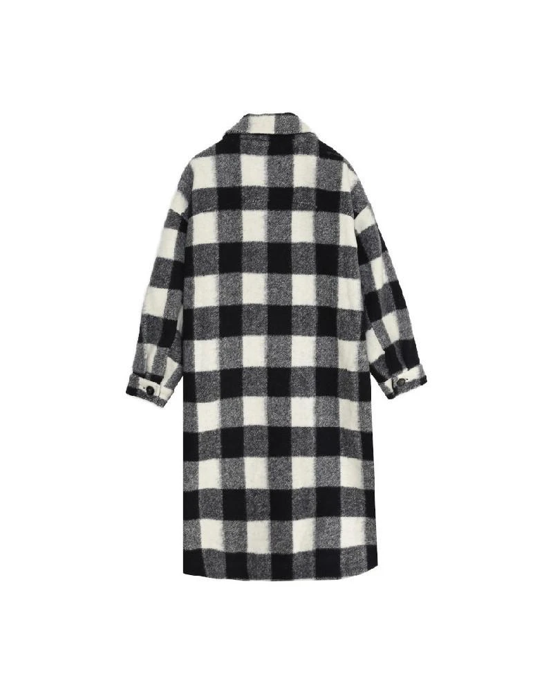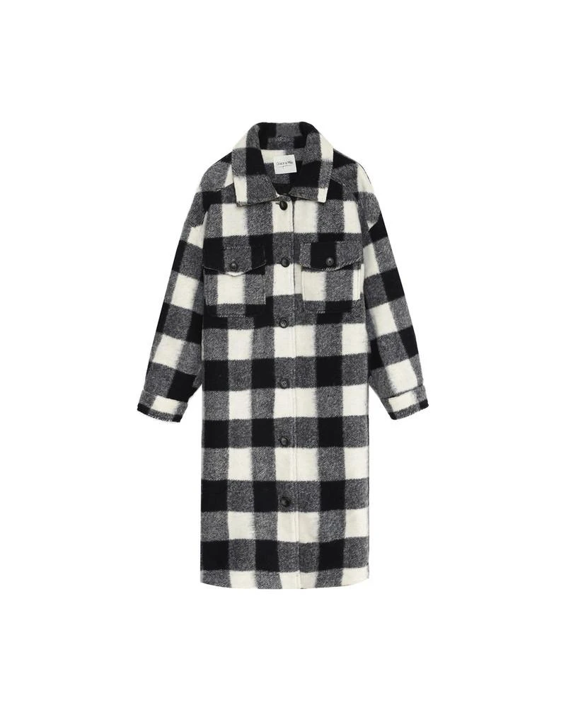 La coupe : DERECK est un manteau à carreaux en laine mélangée, longueur midi, à manches longues, avec une coupe oversize, des doubles poches plaquées et une patte de boutonnage sur le devant, ainsi que des poches latérales