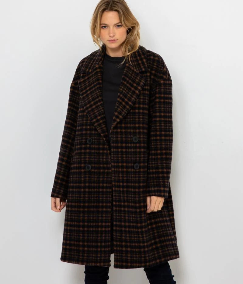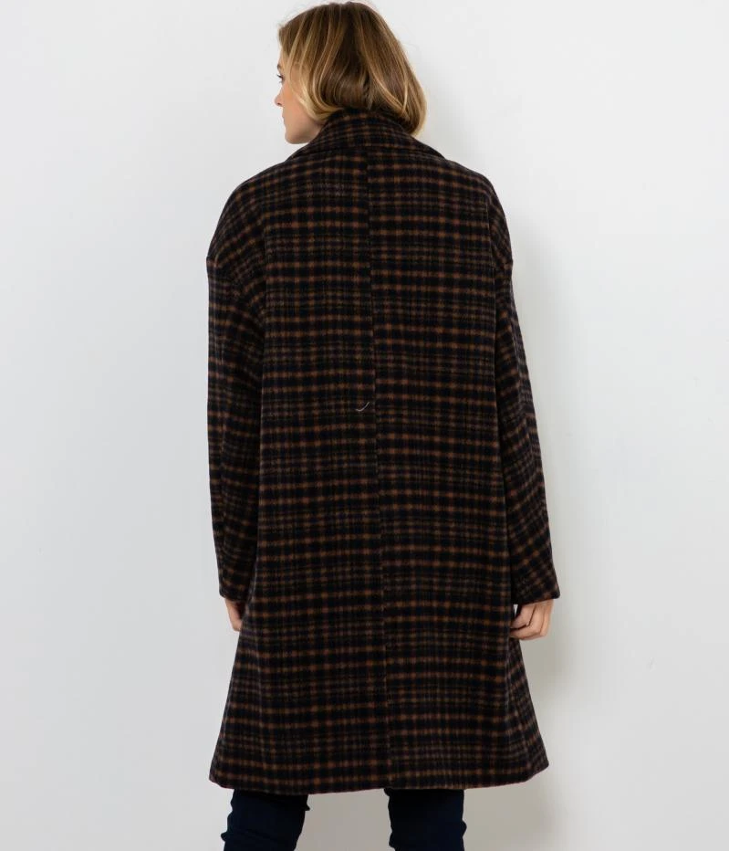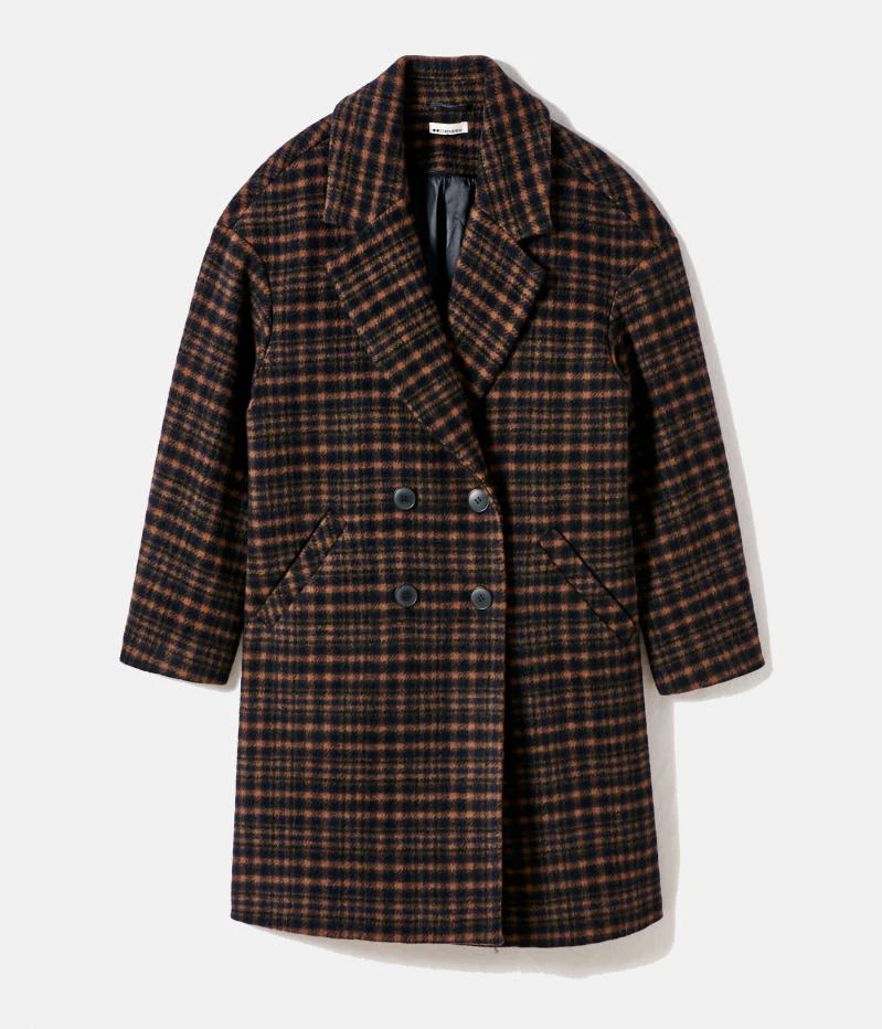 Vente Manteau graphique femme Camaieu – Un manteau femme confectionné en poly-laine. Coupe droite, porté oversize, emmanchures descendues, longueur sous genoux, grand col tailleur, double boutonnage, poches raglan, fantaisie graphique. Le mannequin mesure 1.76M et porte une taille M.