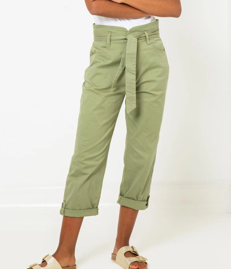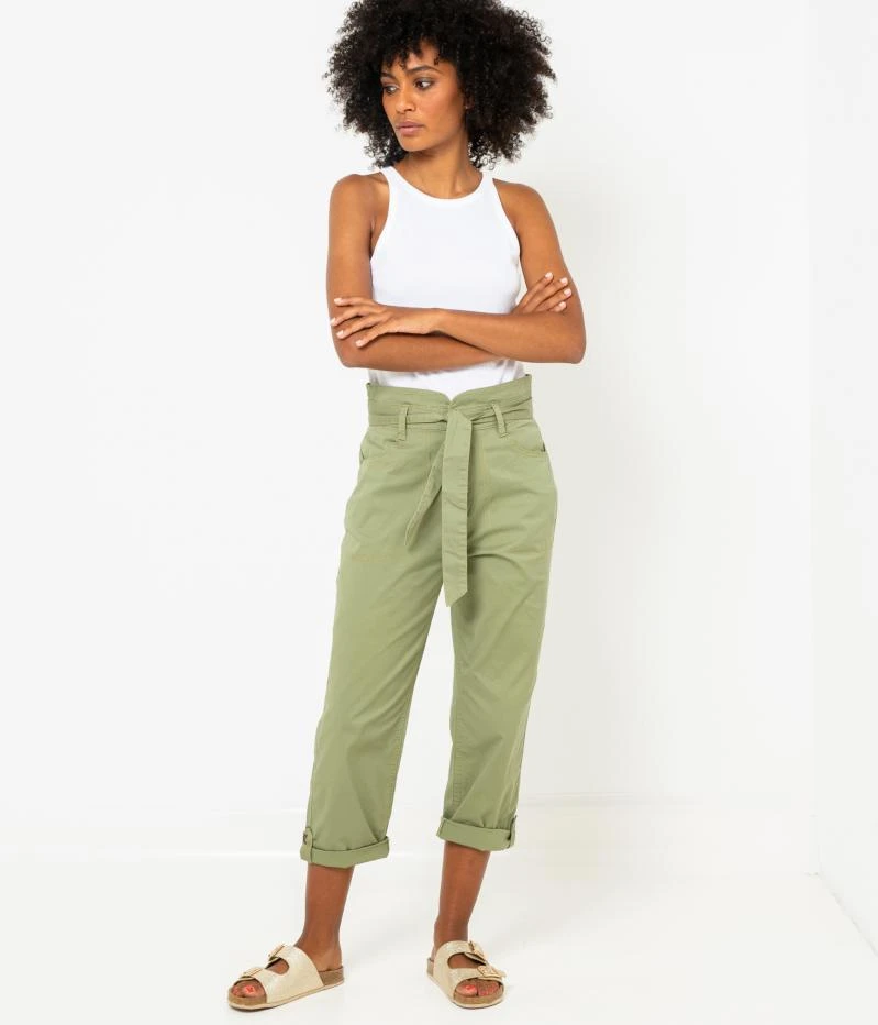 Vente Pantacourt carotte ceinture femme Camaieu – Un pantacourt femme confectionné en coton-élasthanne pour plus de confort. Coupe carotte, fermeture zip sous patte et bouton métal, lien sous passants à nouer, poches plaquées, poches passepoils au dos, revers ajustables. Le mannequin mesure 1.75M et porte une taille 38.