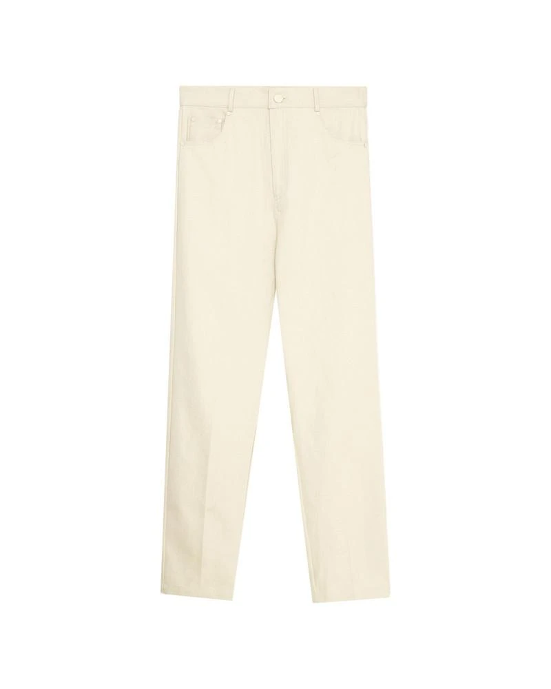 « La coupe : DAREN est un pantalon en denim, coupe droite, taille haute, style cinq poches, avec une fermeture par bouton et une fermeture éclair.