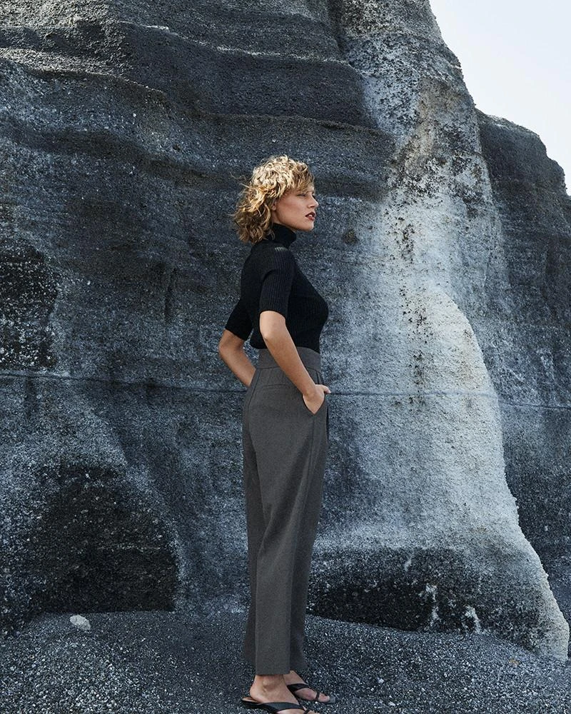La silhouette : Ce pantalon d’inspiration rétro est une pièce hyper mode ! On aime sa taille haute et le détail des pinces sur le devant qui mettent la silhouette en valeur à merveille. Une pièce à la fois intemporelle et tendance pour un look boyish et pointu.