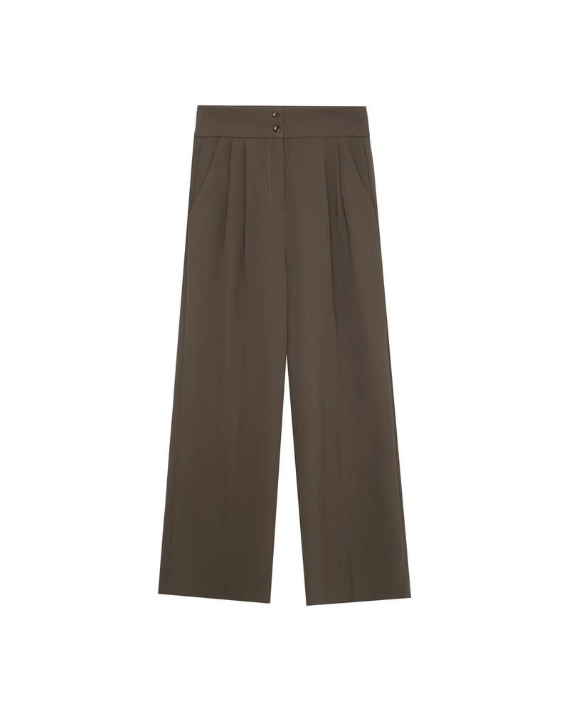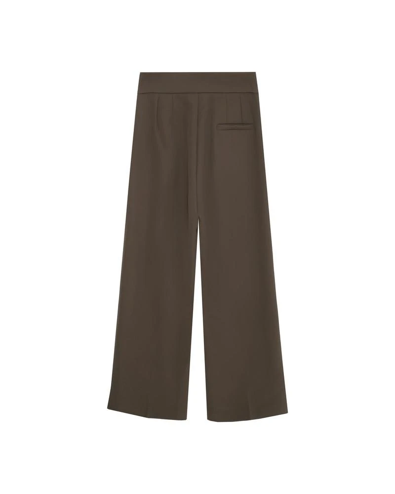 La coupe : DAUMESNIL est un pantalon large, taille haute, longueur 7/8e, avec des passants de ceinture, des pinces sur le devant, une fermeture éclair et des poches italiennes.