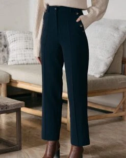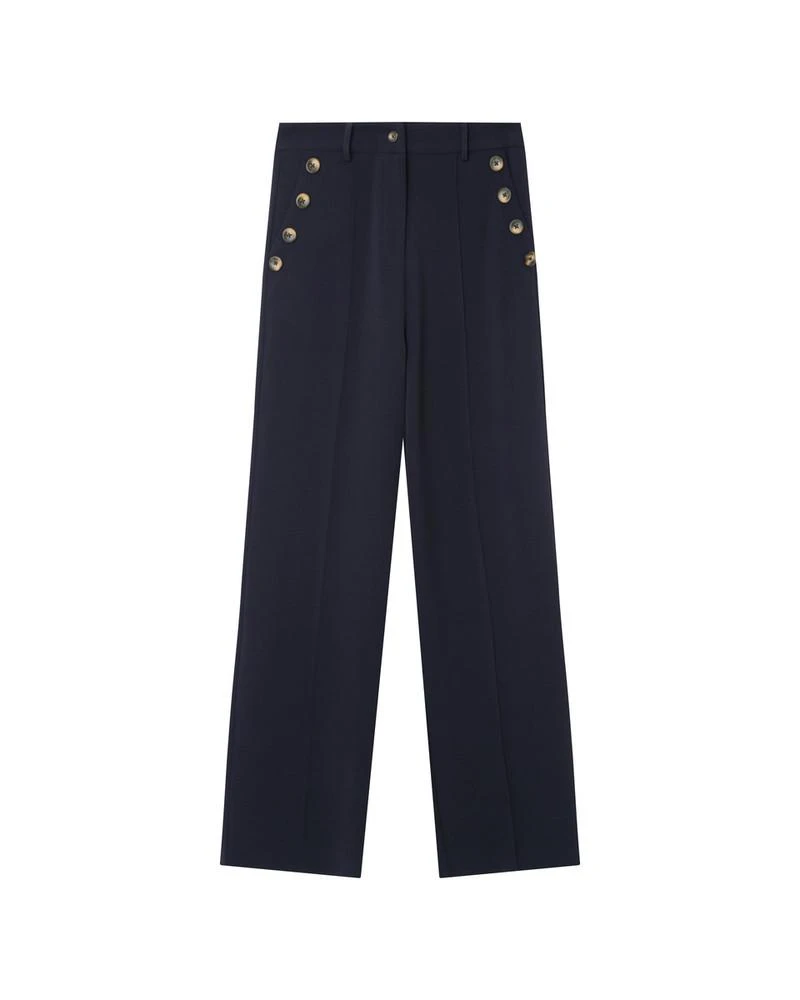 La silhouette : très chic, ce pantalon habille et sublime la silhouette en lui apportant de la structure et de la longueur. On craque pour les détails de boutons qui offrent une touche rétro très élégante.