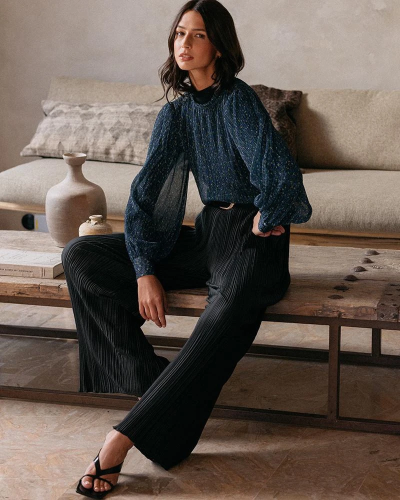 La silhouette : Pièce coup de cœur de la collection, ce pantalon habille votre tenue avec un chic sans pareil. On adore sa coupe oversize et fluide qui bouge avec notre démarche. Grâce à son plissé, l’allure est lumineuse et élégante, avec cette touche 70’s dont on ne se lasse pas.