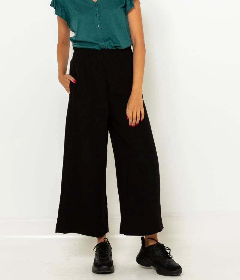 Vente Pantalon large écourté femme Camaieu – Un pantalon femme confectionné en poly-viscose. Coupe élargie et écourtée, taille haute élastique : on l’enfile ! Le mannequin mesure 1.75M et porte une taille M.