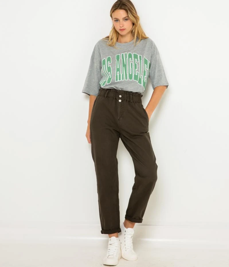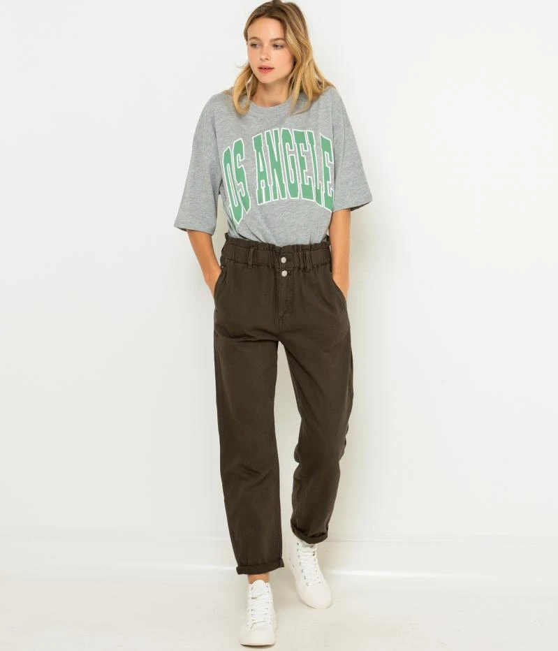 Vente Pantalon taille haute froncée waterless process Camaieu – Un look sportswear pour ce pantalon femme confectionné en denim de coton. Coupe droite finement élargie, taille haute élastique et froncée ornée de passants, deux boutons métal, poches latérales, poches dos, revers aux bas. Le mannequin mesure 1.75M et porte une taille 38. Ce produit a été fabriqué à partir d’un procédé de délavage réduisant la consommation d’eau.