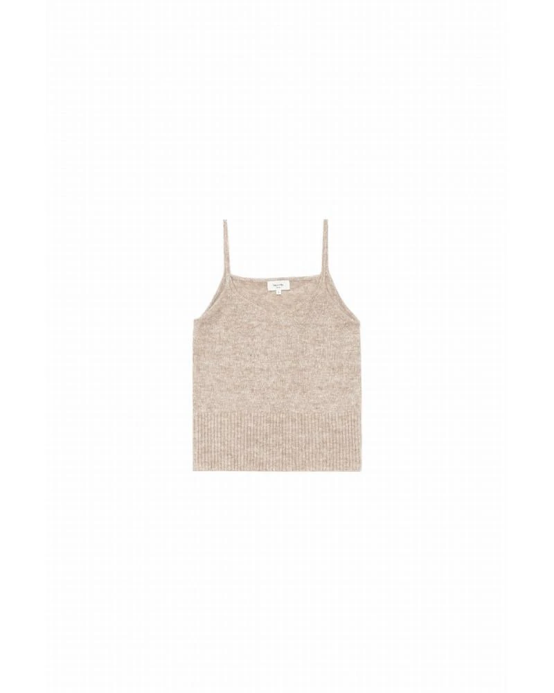 La coupe : CALI est un top tricoté en polyester recyclé. Sa coupe débardeur sans manches épouse le buste avec délicatesse.