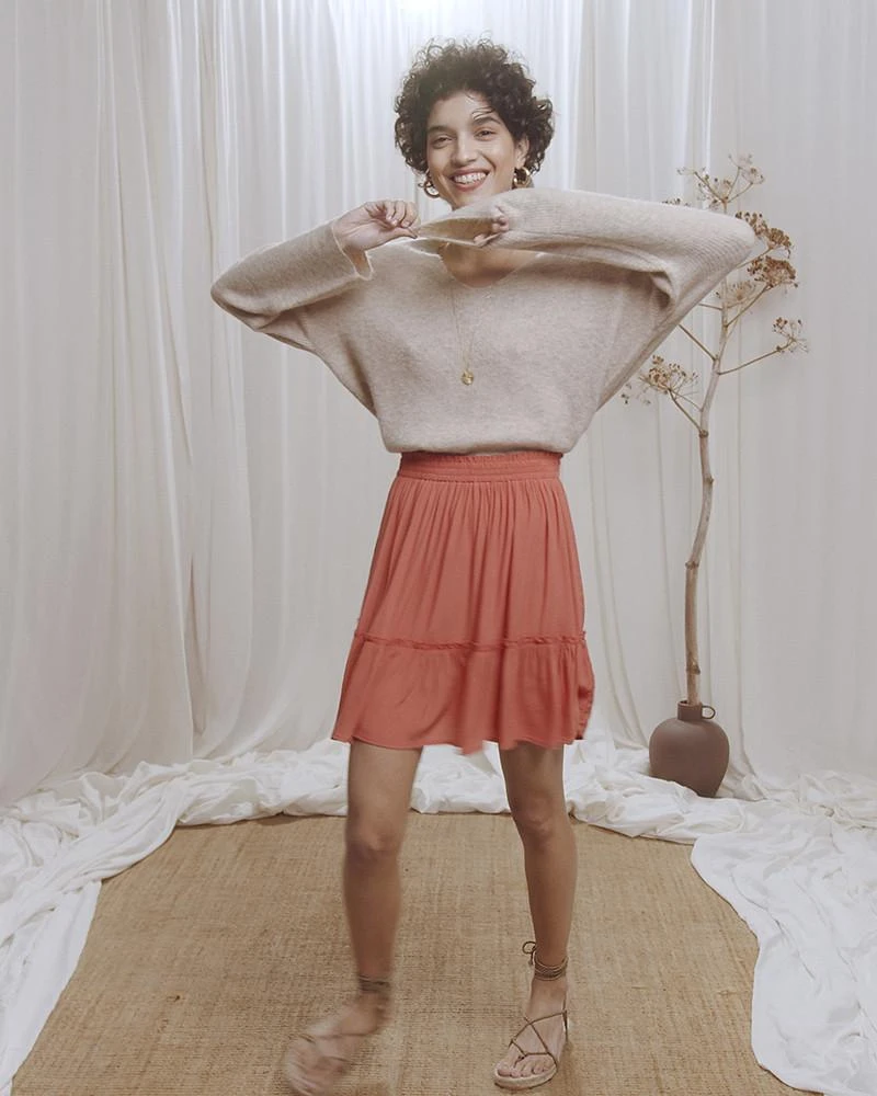 La silhouette : Craquez pour une silhouette délicate, simple et évidente qui met en valeur votre beauté naturelle. CALME est le genre du pull qui fait du bien au moral et qu’on a envie de porter tout le temps ! On ne se lasse pas de son toucher tout doux et du confort incroyable qu’il nous procure avec élégance.