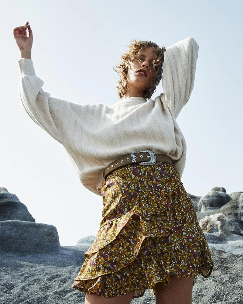 La silhouette : Ce pull à manches ballons oversize est très agréable à porter. On aime son allure bohème et réconfortante qui fait du bien au moral. C’est une pièce dans laquelle on envie de se blottir et qui s’accorde avec tout.