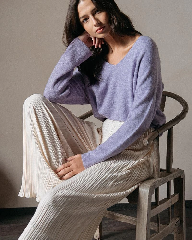 La silhouette : Cette maille style épaules tombantes est un véritable nuage de douceur. Son encolure V met en valeur le haut de la silhouette et sa coupe loose apporte une touche sensuelle à vos looks du quotidien. Un essentiel de notre garde robe que l’on aime avoir toujours sous la main.