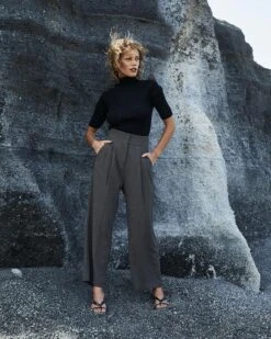 La coupe : DAMIA est un pull près du corps à manches courtes avec un col roulé en maille côtelée.