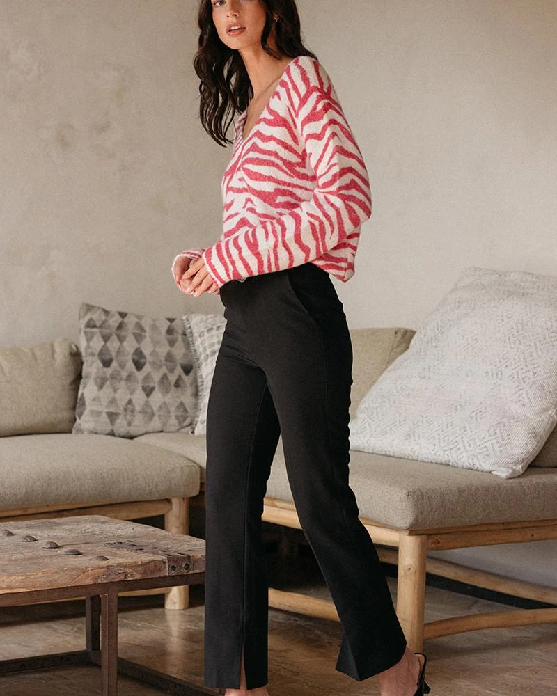 La silhouette : Avec son encolure en V souple, la silhouette est délicate, féminine et crée une jolie balance avec son imprimé affirmé. Le côté oversize du pull apporte de la liberté à nos mouvements et de la confiance en soi. On décèle votre personnalité et votre envie de bien-être avec cette pièce de qualité !