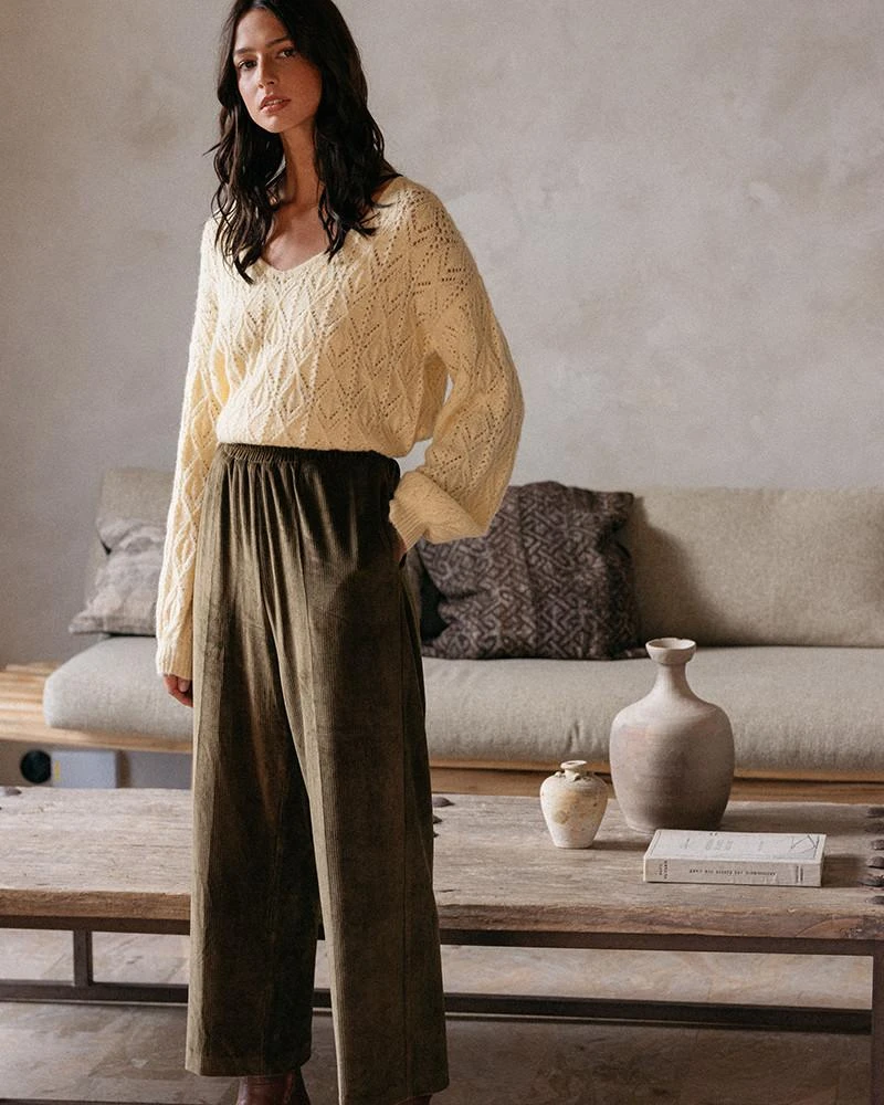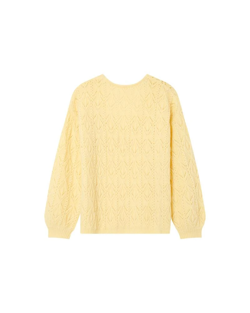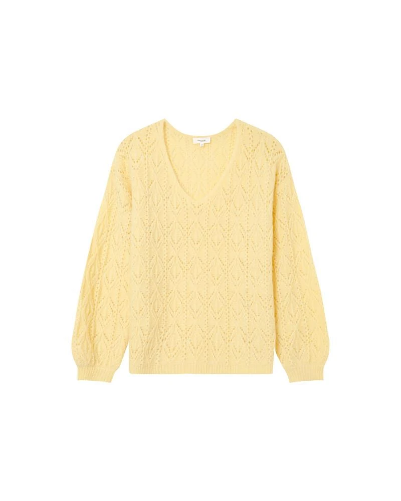 La coupe : DUMAS est un pull en maille dentelée avec une encolure en V.