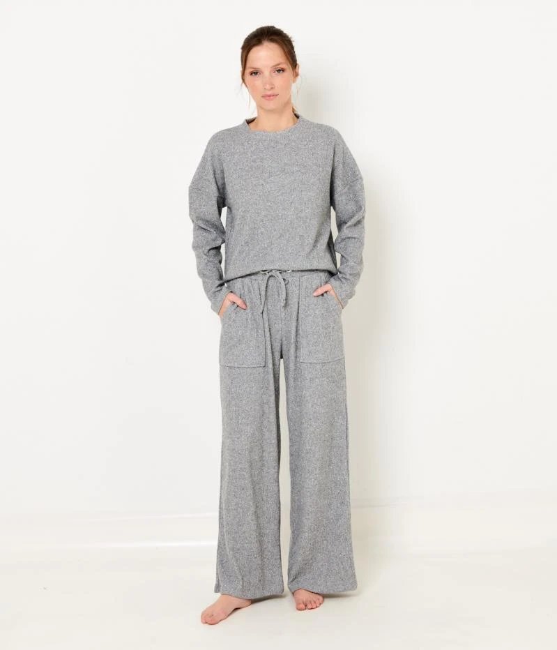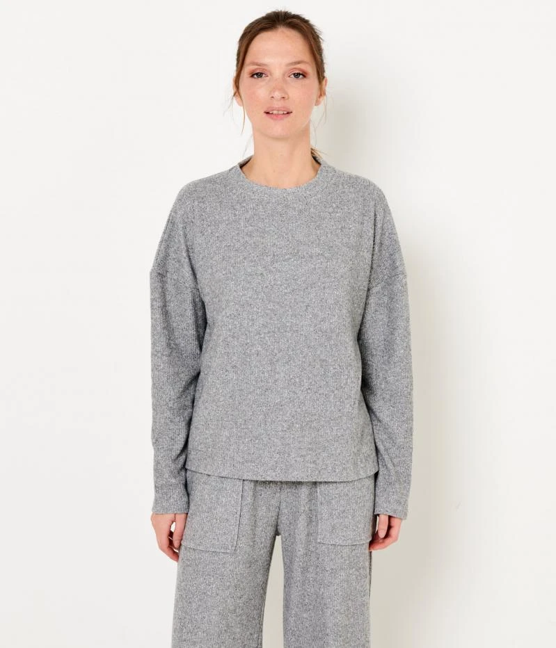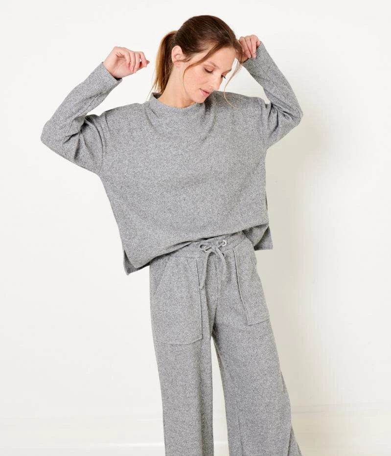 Vente Pull homewear femme Camaieu – Un pull femme confectionné en poly-viscose, coton et élasthanne. Coupe droite, texture travaillée en côtes plates, encolure ronde, manches longues, fentes d’aisance au bas. Le mannequin mesure 1.75M et porte une taille M. A porter en total look avec le pantalon ref. 539286.