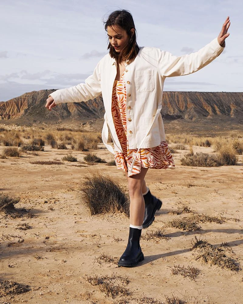 On aime le porter avec : Une veste unie à l’effet “veste saharienne” pour adoucir le look et structurer la silhouette.
