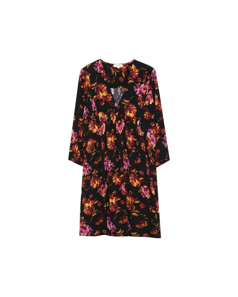 La silhouette : Cette ravissante robe coupe babydoll est un iconique de la garde robe Grace & Mila. Cette saison, on la retrouve avec un imprimé fleuri oversize effet vintage. Agréable à porter, elle convient à toutes les morphologies et met en valeur les gambettes. Avec son tissu rayonne viscose, elle rejoint notre gamme en fibres naturelles Un brin de vert. Un modèle classique avec un imprimé puissant, le parfait combo pour une allure chic et renversante.