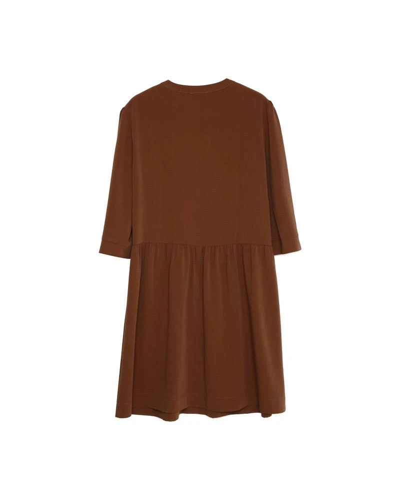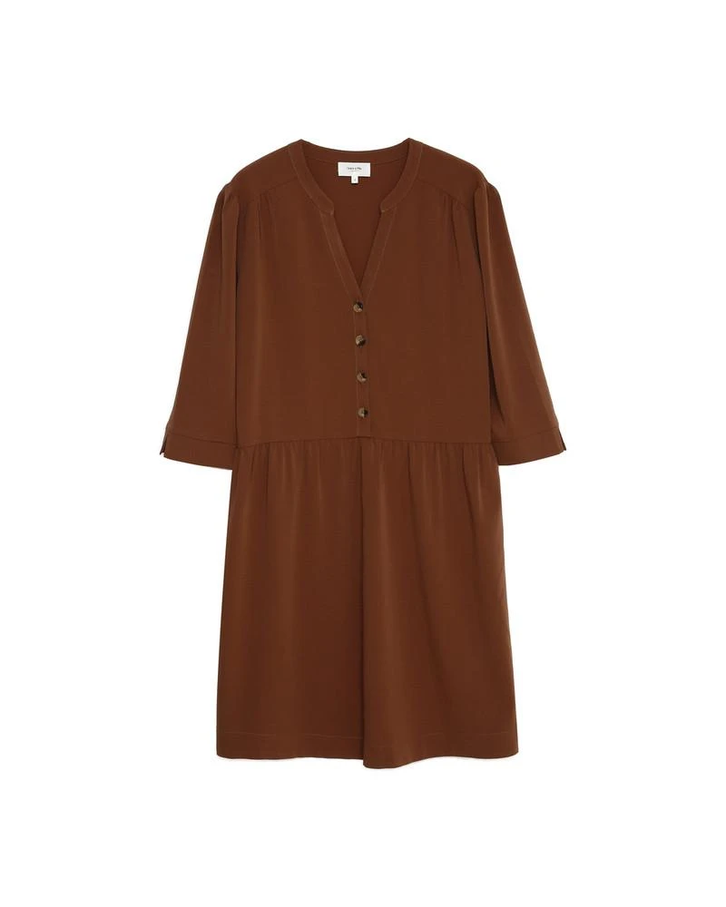 La coupe : DARLENE est une robe courte, à manches 3/4 avec une encolure en V, une patte de boutonnage sur le devant et le long de la taille.
