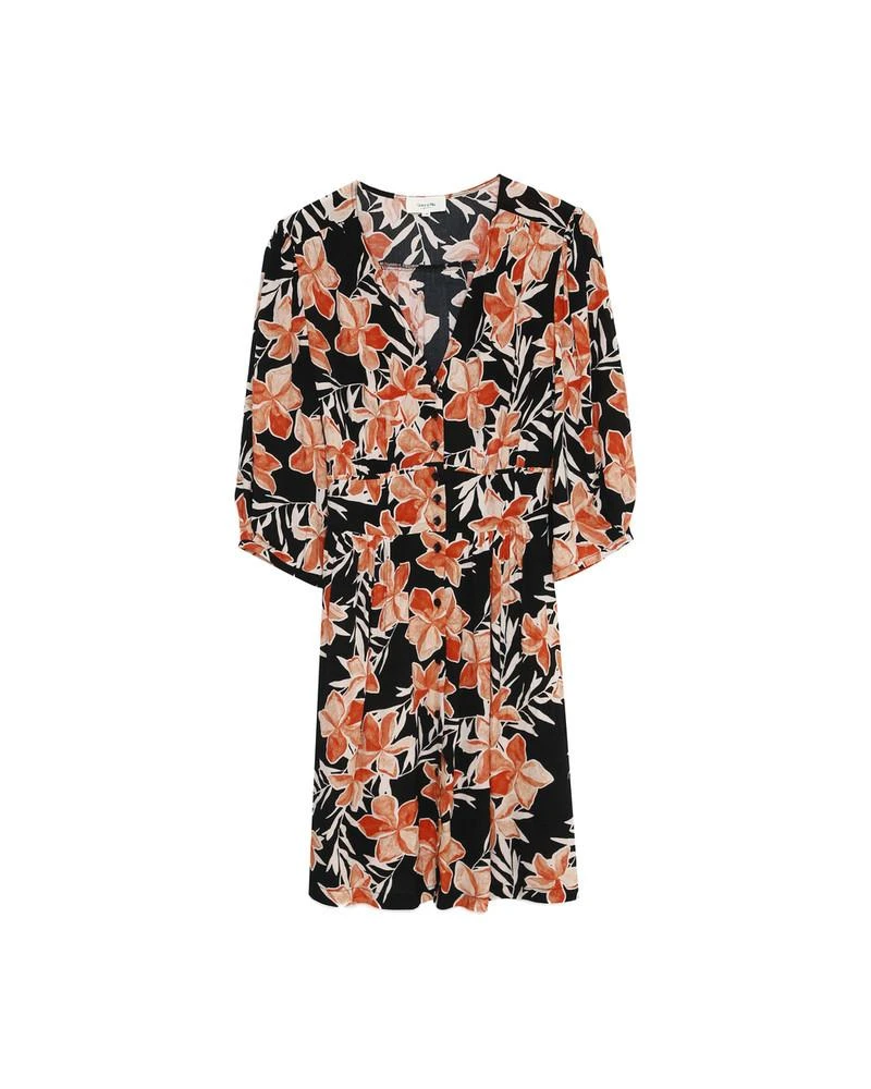 La silhouette : Cette jolie robe ceintrée est en imprimé exclusif Grace & Mila. Avec son tissu viscose rayonne, elle rejoint notre gamme en fibres naturelles Un brin de vert. On aime son coté pétillant et la douceur de l’imprimé fleuri. L’encolure en V met en valeur le décolleté et sa ceinure élastiquée sublime la taille. Une pièce délicate pour des looks de tous les jours qui ont du peps.