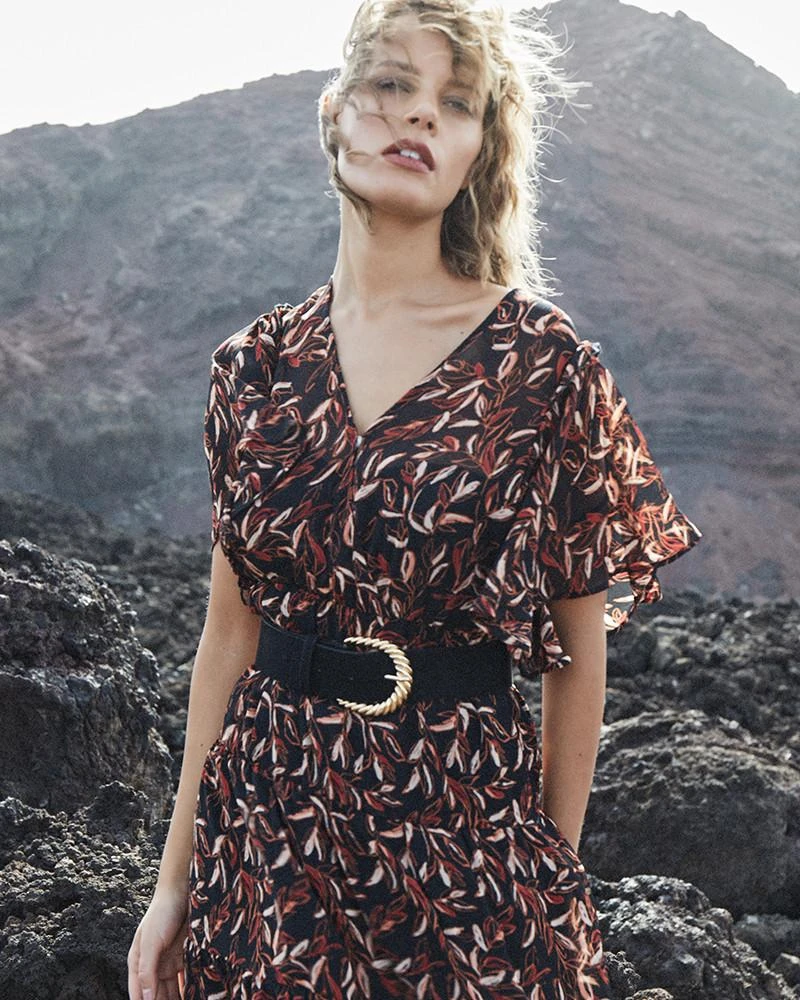 La silhouette : Coup de coeur pour cette robe aérienne aux manches courtes evasées. Une jolie robe longue voilée qui enveloppe délicatement la silhouette. Son imprimé fleuri a été dessiné exclusivement par nos équipes en interne. Idéale pour des looks féminins et confortables. L’allure est bohème-chic.