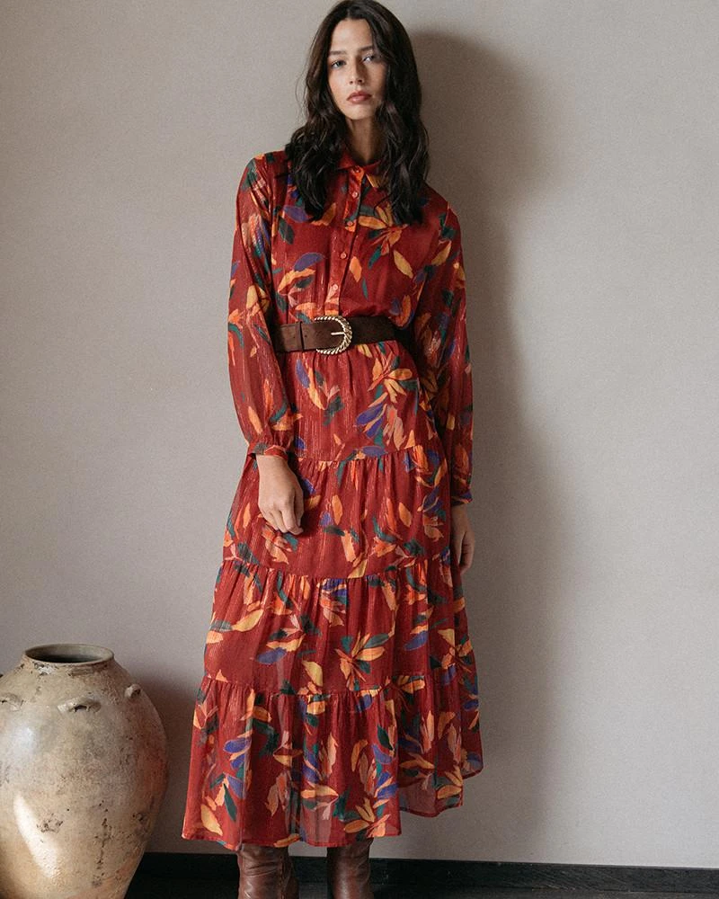 La silhouette : Affirmée et graphique, cette robe offre à notre silhouette une allure champêtre et rock à la fois. Une tendance très 70’s que l’on reconnaît et qui illumine votre silhouette. Dans ses deux teintes cuivrée ou marine, cette robe vous apporte une belle énergie positive.