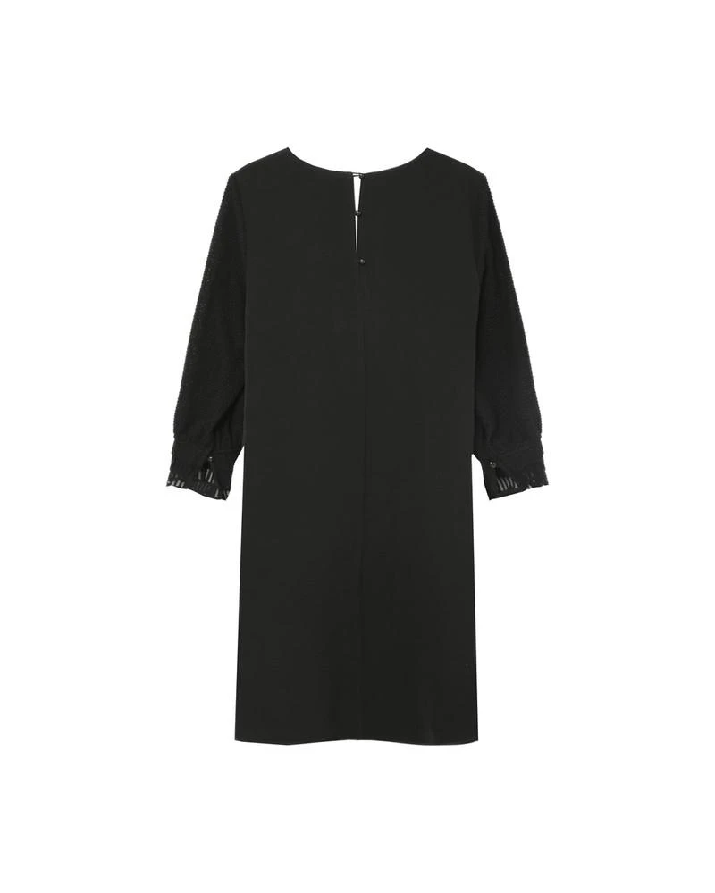 La silhouette : On adore la fausse simplicité de cette robe et son charme captivant. Avec tous ces détails de coquetterie, elle est une pièce féminine qui vient faire la différence dans votre dressing. Si l’accent a été mis sur les manches avec sa dentelle de plumetis ajourée et le détail sublime du dos, la coupe de la robe apporte de la structure et une touche 60’s qu’on apprécie particulièrement.
