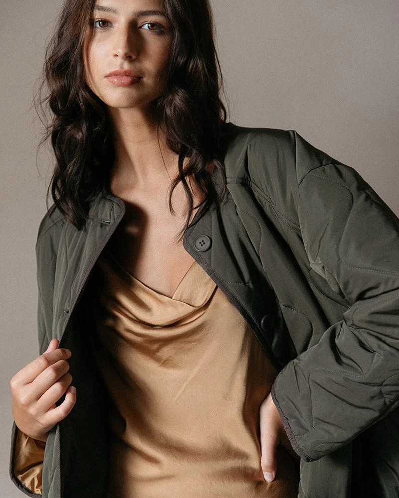On aime le porter avec : une grande chemise oversize nouée pour une tenue raffinée, une grosse maille ou un cardigan pour un look plus casual, ou juste sous une grosse doudoune longue pour jouer avec le contraste et créer un effet wahou !